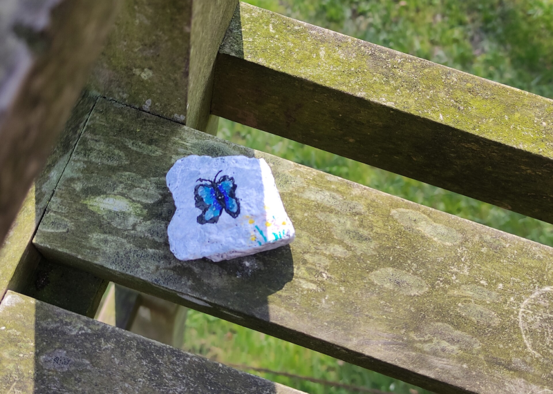 De laatste die we in het Arboretum hebben neergelegd. Dag vlindertje, we zijn benieuwd waar je vleugeltjes je heen zullen brengen!